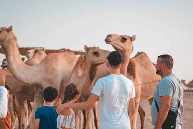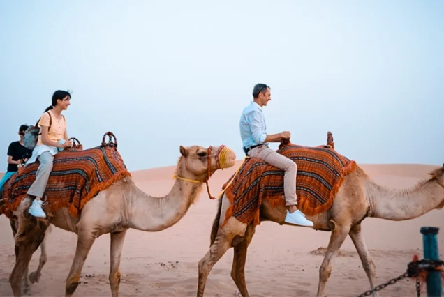 After dune bashing, we’ll visit a traditional camel farm. You’ll get to learn about the cultural significance of camels in the UAE, meet them up close, and take memorable photos with these gentle giants against the beautiful desert scenery.