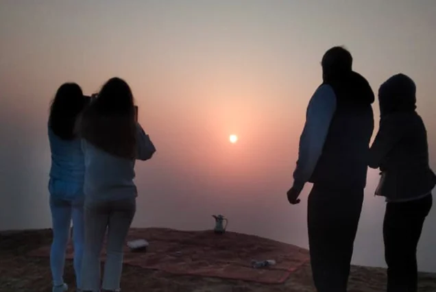 Arrive at the Al Khatim desert before sunrise to see a stunning display of colours as the sun begins to rise.